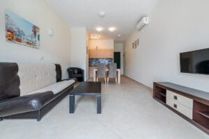 Total area: 41 sqm + spacious terrace. The apartment is fully furnished and equipped with appliances. Heating and cooling via air conditioning.