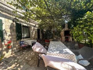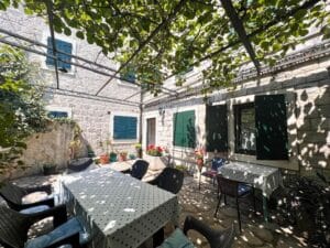 This beautiful stone house on the sea front was completely renovated five years ago and has 250m2 of living space with 80m2 of well-maintained and cultivated courtyard. It consists of ground floor, with 2 separate apartments and utility room; first floor consists of one bedroom apartment with spacious living room, kitchen/dining room, toilette, and a fireplace. The top floor (attic) consists also of one bedroom apartment, living room with kitchen/dining room, bathroom and a terrace. In front of the house is common parking.