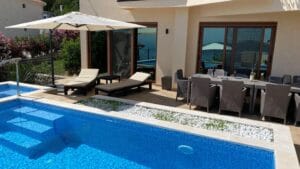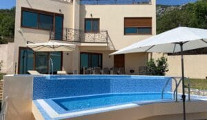 The villa is decorated with natural stone, Italian tiles, ceramics, marble, exotic forging. Windows and doors with anti-solar coating.