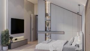 The penthouse is offered in completed standard finish, including fitted bathrooms, air-conditioning units, flooring, ceramic tiles, and full technical installations.