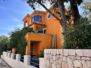 Surrounded by mature conifers and a shaded courtyard, the villa provides a serene atmosphere. The neighborhood comprises luxurious modern villas, adding to the overall allure. Ideal for a peaceful vacation, the villa is complemented by various amenities nearby, including excellent restaurants, taverns, a large market, hotels, and a beach bar within walking distance. Parking is conveniently provided.