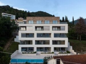 The apartments are part of a contemporary residential building with a landscaped outdoor area and a shared swimming pool, making them suitable for both everyday living and leisure stays. The nearby seaside promenade and close proximity to the sea create a pleasant coastal environment, while all city amenities of Tivat are easily accessible.