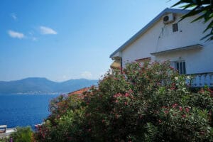 Two of the units are one-bedroom apartments, each featuring a living room, kitchen, bathroom, and terraces with stunning views of Tivat Bay. The third unit is a duplex on the top floor. The first level includes a living room, bedroom, kitchen, and bathroom, while the attic space, which is open-plan, serves as an additional bedroom and study.