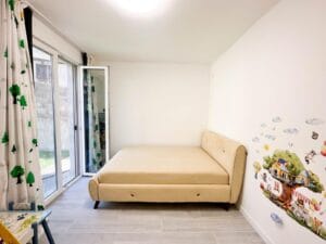 The area of the house is 227m2. The ground floor is completely finished and consists of a large living room, one bedroom, and a kitchen and dining room that are separated into one room. The first floor – three living rooms, bathroom. Underfloor heating is installed in all rooms.