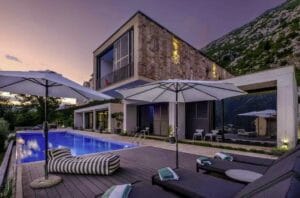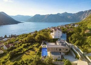 This exquisite villa in Dobrota combines modern luxury with breathtaking panoramic views of the bay, featuring a private pool and elegant design.
