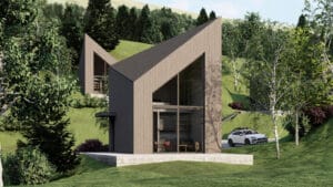 In the eastern part of the plot 14 cozy cottages are being built on the edge of the forest. With a living space of 35.4 square meters, they are quite small and contemplative, but the open construction with a complete window front conveys a sense of space that the size does not suggest.