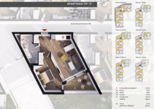 The new complex is located on the hillside of the Budva Riviera, in Becici, in a picturesque, ecologically clean place, with a unique urban landscape. Remoteness from city noise, as well as an abundance of vegetation creates an atmosphere for relaxation and tranquility. Mountain air not only creates a pleasant coolness in the summer, but also has a regenerating effect on the entire body. There will be a surge of strength, vivacity, vigor. The architects designed the building in such a way that almost every apartment has a view of the sea, mountains and city. And you can enjoy beautiful views, getting a real aesthetic pleasure.