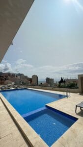 A comfortable one-bedroom apartment of 39m2 is located on the second floor of a brand new residential building in Bečići and is only 300 meters away from the sea. The building has an elevator and an underground garage, as well as a large swimming pool with a view of Bečići and the sea. Things such as a market, post office, pharmacy and restaurant are nearby. Although it is located in the center and near the beach, the environment guarantees peace and quiet.
