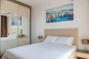 Nestled within a well-appointed complex just 300 meters from the captivating seafront, this property boasts a prime location with convenient access to various amenities. The complex features a secure underground garage, well-lit entrances, and well-maintained sidewalks, ensuring a safe and inviting environment for residents.
