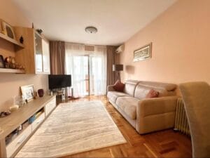 This one-bedroom apartment is located directly across from the school in Bar. It has a total area of 53 m² and is positioned on the 6th floor of a residential building with an elevator.