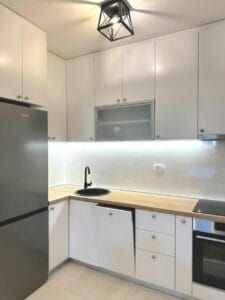 The apartment is located 300m from the sea, with the nearest beach 800m away.