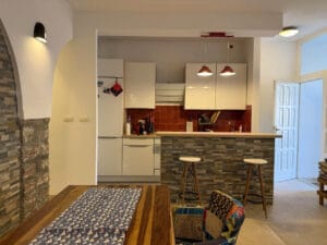 The apartment is situated on the ground floor of a historic stone palace and has a total area of 51 m².