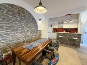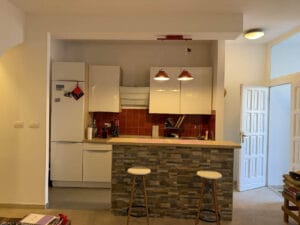 It consists of a separate entrance hall, an open-plan living room with kitchen and dining area, one bedroom, and a bathroom. The apartment is fully furnished, ready to move in, and sold as seen. It was completely renovated a few years ago and is suitable both for comfortable living and as a rental investment.