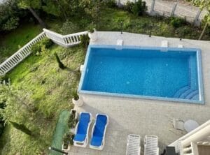 The villa in Bar is located on a spacious plot of 2000m2 with coniferous trees and green spaces. Panoramic views of the sea and mountains open from anywhere in the house.