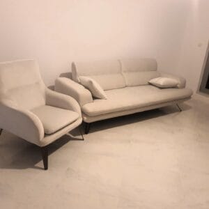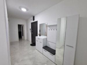 It consists of a hallway, two bathrooms, three bedrooms, kitchen, dining room and living room. It is luxuriously equipped – the furniture is made to measure, it has underfloor heating, one of the bathrooms has a jacuzzi tub, the appliances in the kitchen are of high quality.