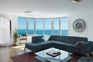 Panoramic windows with a unique view in the living room and bedroom give the impression of space drowning in the sea and the horizon. Modern harmonious Scandinavian interior emphasizes the panorama of the sea and mountains. The apartment is equipped with everything you need to start living in it, or to let it out immediately after purchase.
