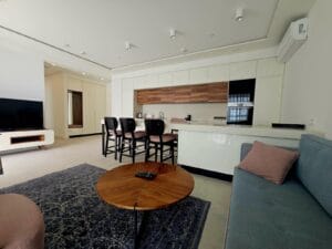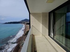 Presenting an exquisite apartment nestled within an exclusive complex, situated in a distinguished building on the coveted first line from the sea. Spanning a generous 76m2, this residence boasts a well-appointed layout featuring two bedrooms, two bathrooms, and an expansive “open space” kitchen seamlessly integrated with a welcoming living room. The living room extends graciously onto a spacious terrace, offering uninterrupted vistas of the azure sea.