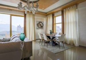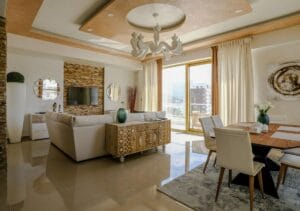 This spacious two-bedroom apartment offers panoramic views of Budva and spans 131m². Situated on the 8th floor of a modern residential building, just steps away from TQ Plaza, the apartment provides both comfort and convenience.