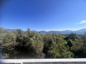On the elevated ground floor, you’ll find a living room that opens to a spacious terrace, offering views of greenery and olive trees. This floor also includes a kitchen, one bedroom and a bathroom. Upstairs, there are two additional bedrooms, both with access to a terrace, and a bathroom.