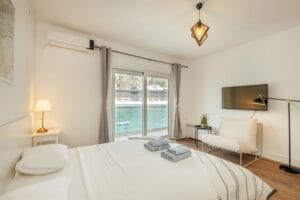 The apartment features a spacious internal area of 83 m² and a 10 m² terrace, perfect for enjoying the panoramic bay views. It includes a fully equipped modern kitchen, a bright open-plan living area, two comfortable bedrooms, and a bathroom.